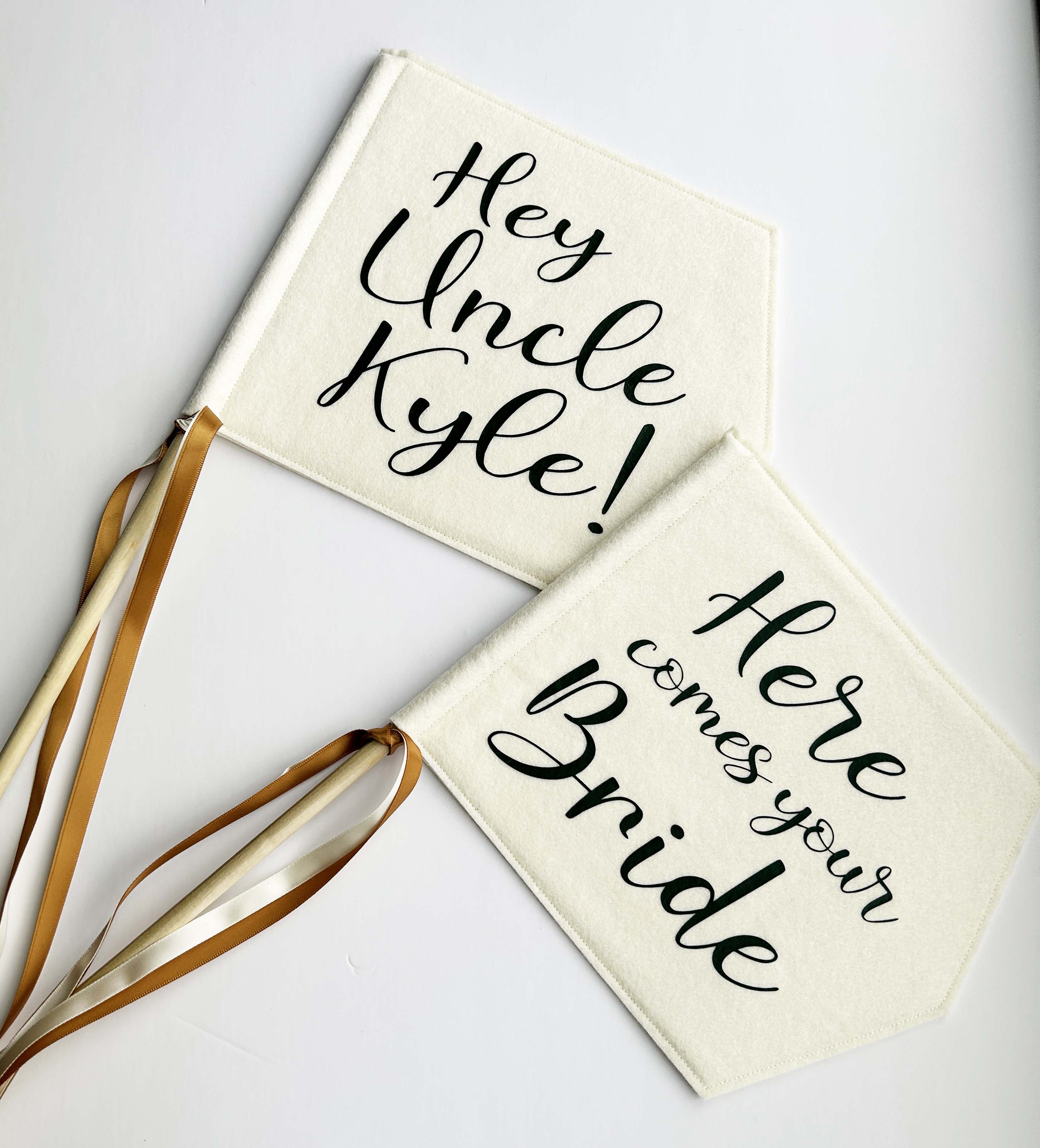 Personalized and sometimes funny felt banners for your ring bearer and flower...