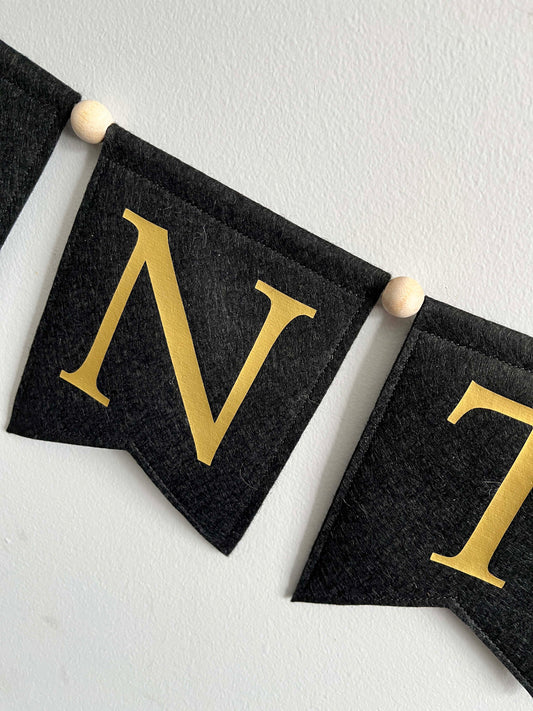Vintage Year Birthday Banner, Black and Gold Party Garland