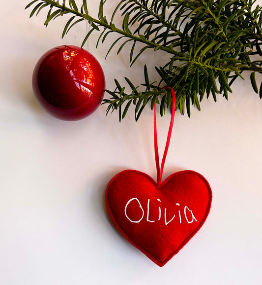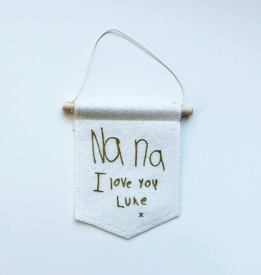 Personalized Mini Felt Banner - Christmas Tree Ornament - Actual Handwriting