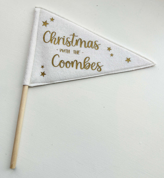Personalized Christmas Tree Topper Flag - Family Name Flag