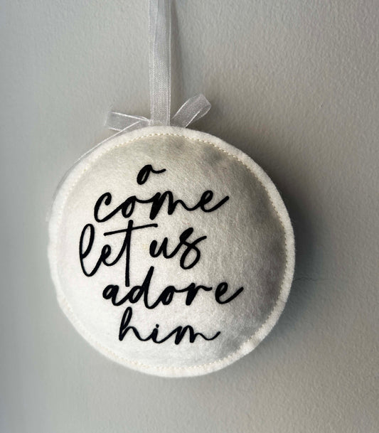 Baby's First Christmas Felt Ornament - Personalized - O come let us adore him