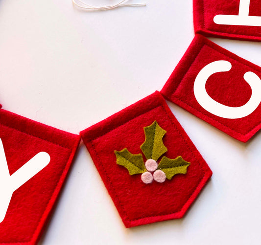Merry Christmas Felt Garland - Christmas Holly Banner