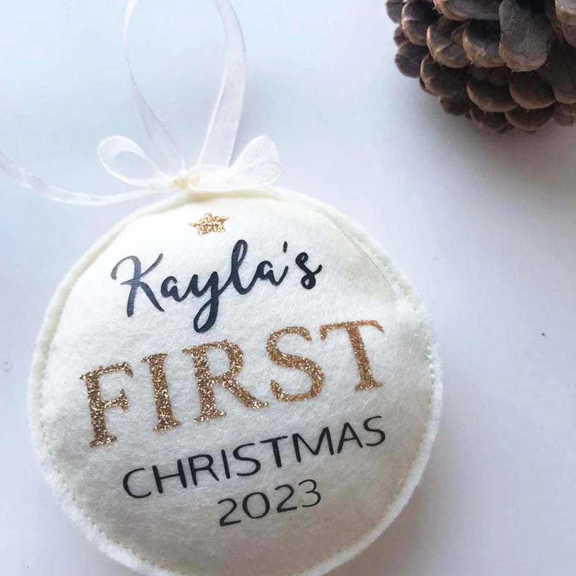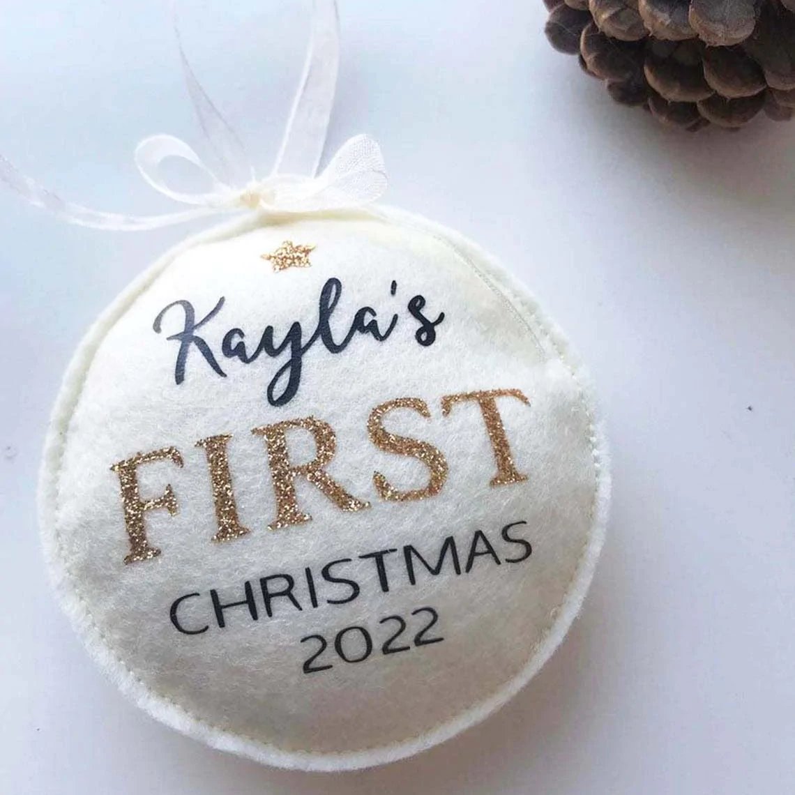 Lovely stitched felt Christmas decoration to celebrate your baby's first christmas.