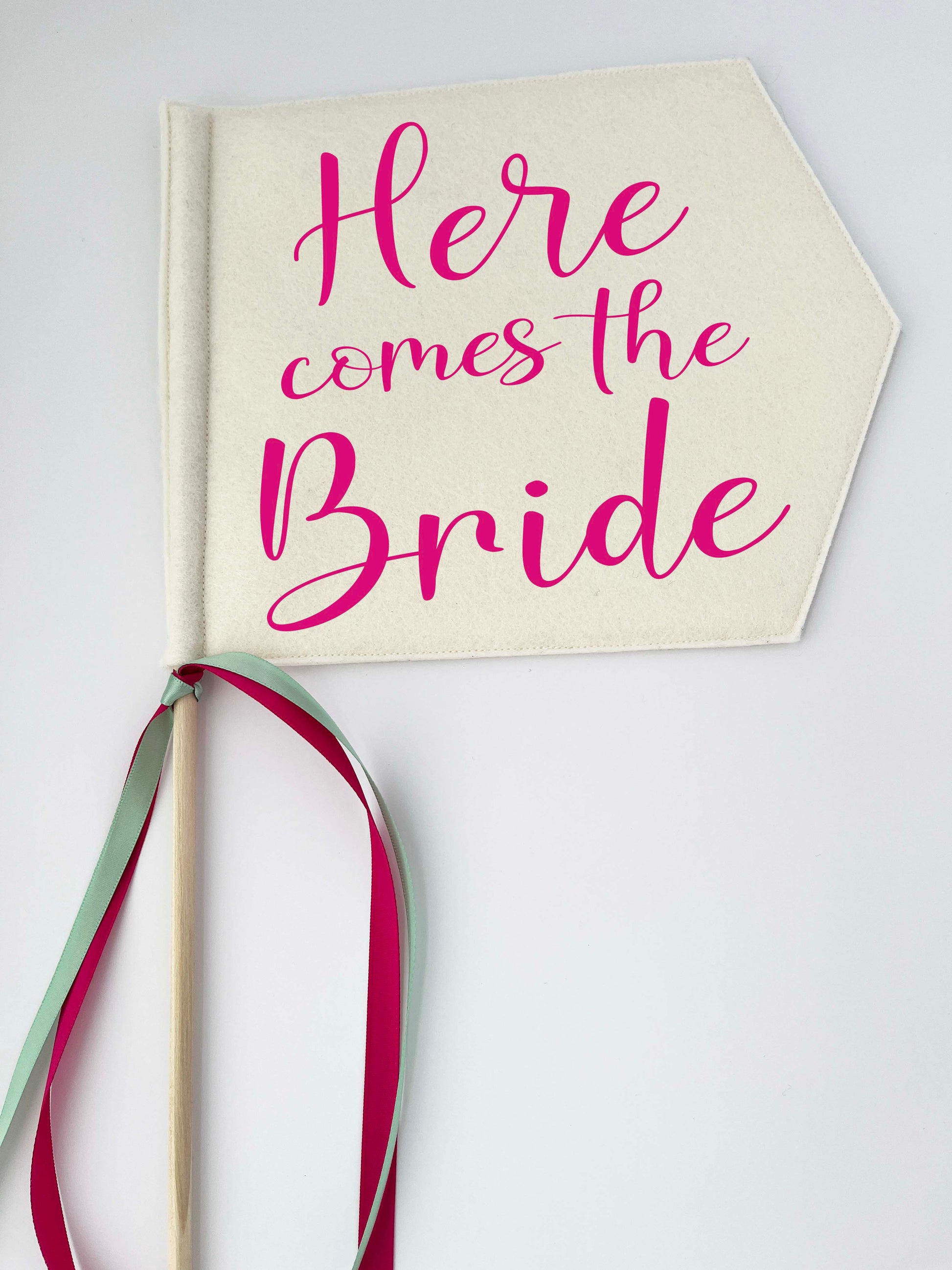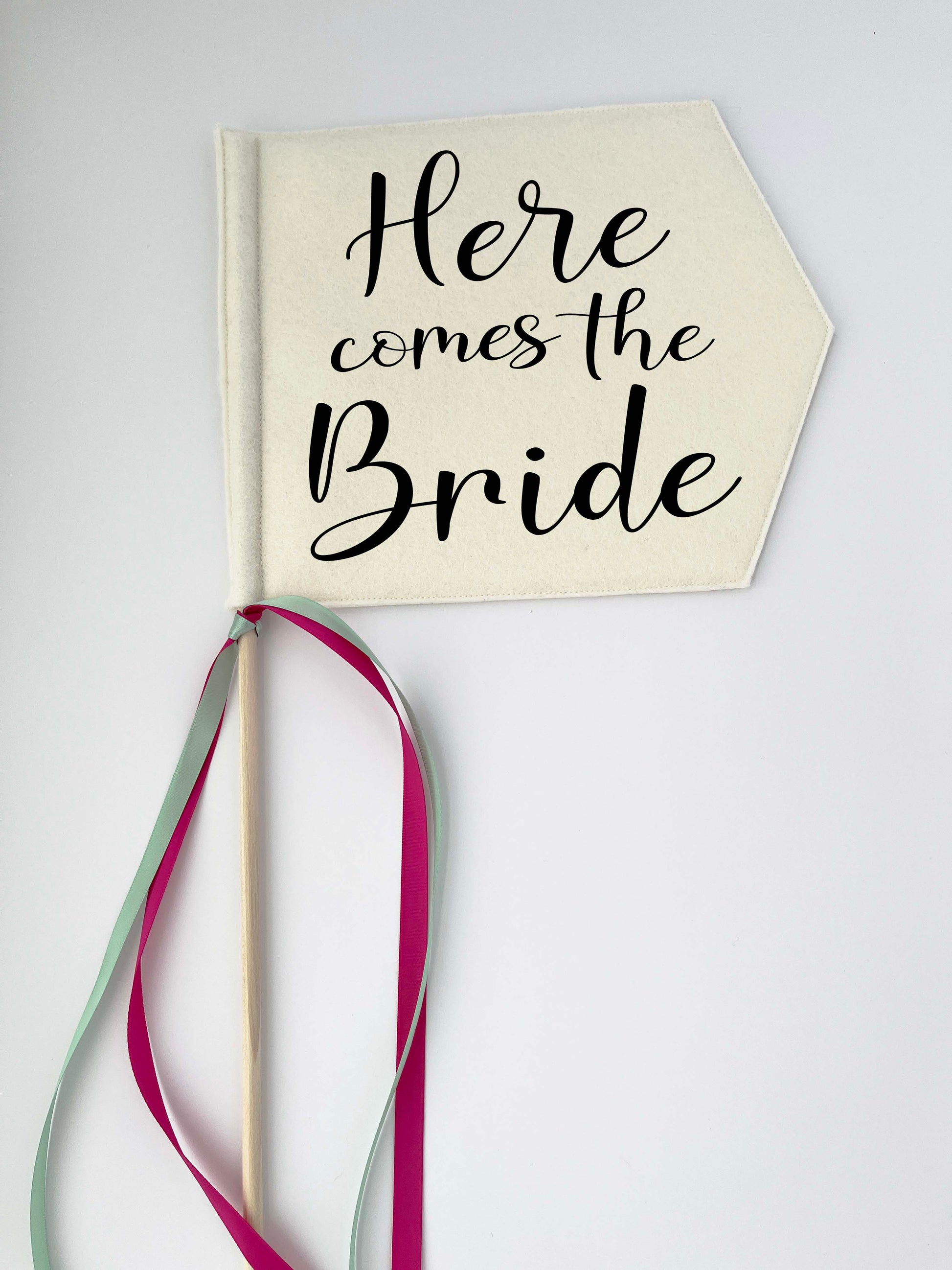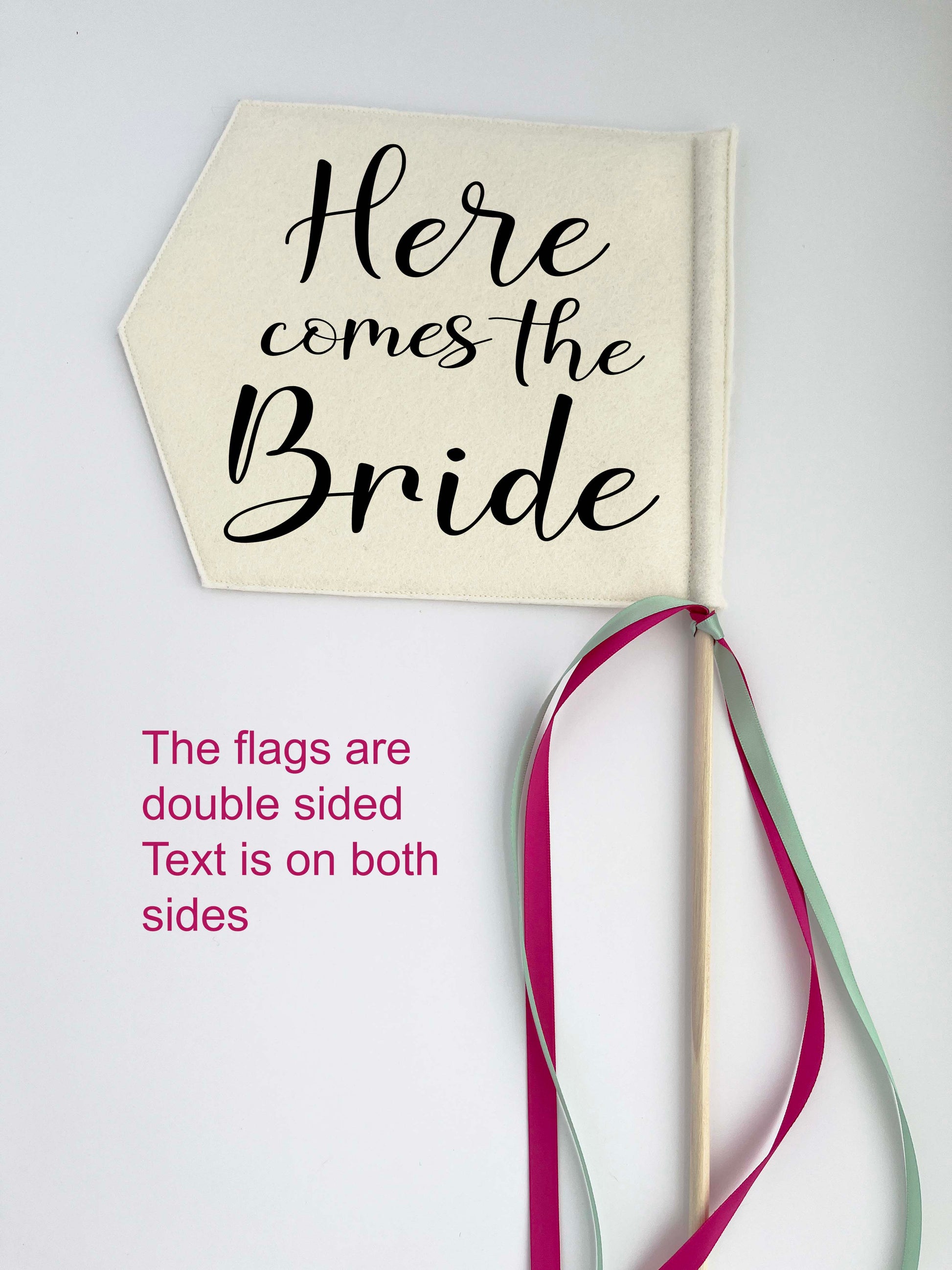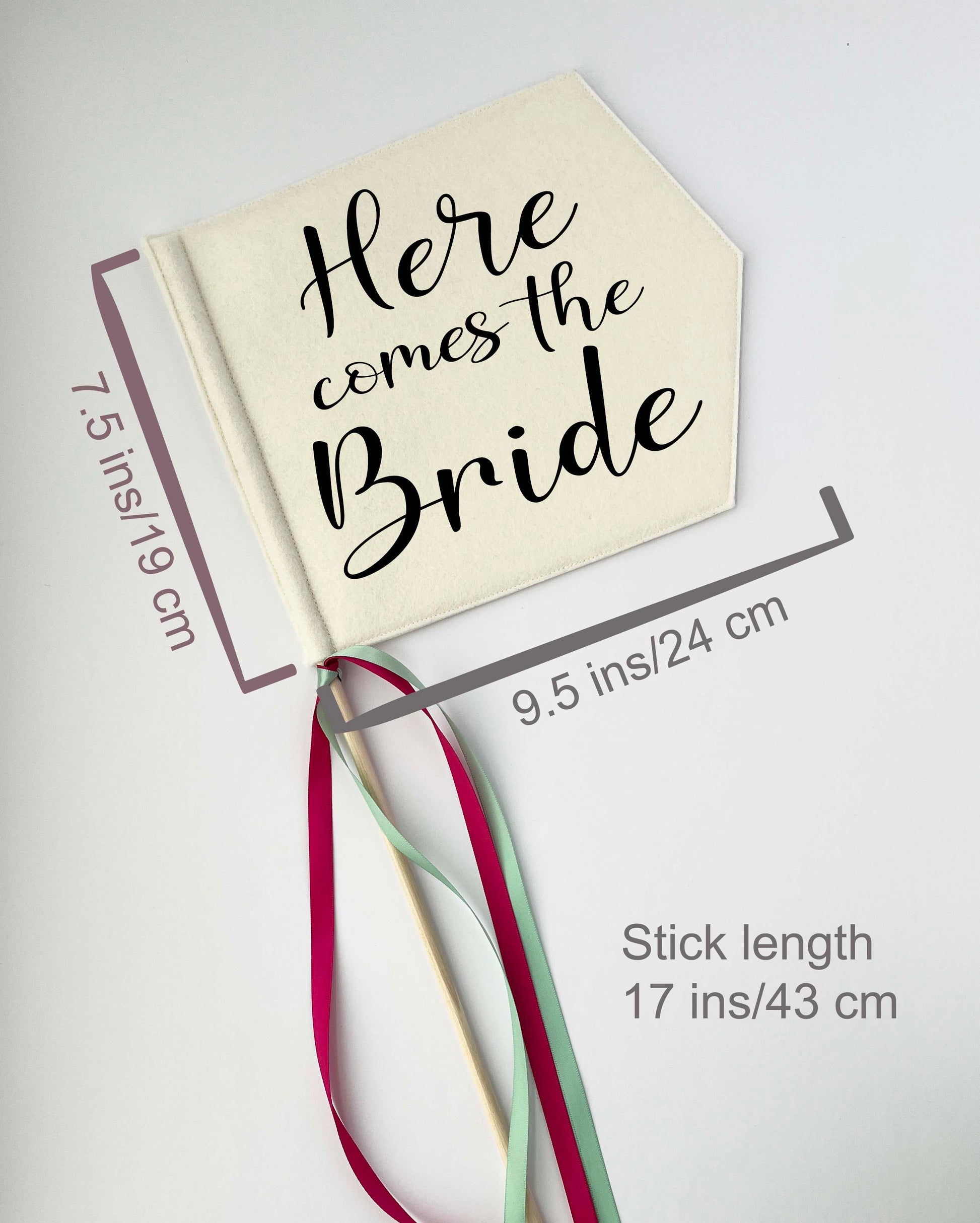 Let your Ring Bearer or Flower Girl announce your entrance with this fun pennant flag. It's lightweight double sided design means it is easily held and the message can be seen by all as they walk down the aisle.