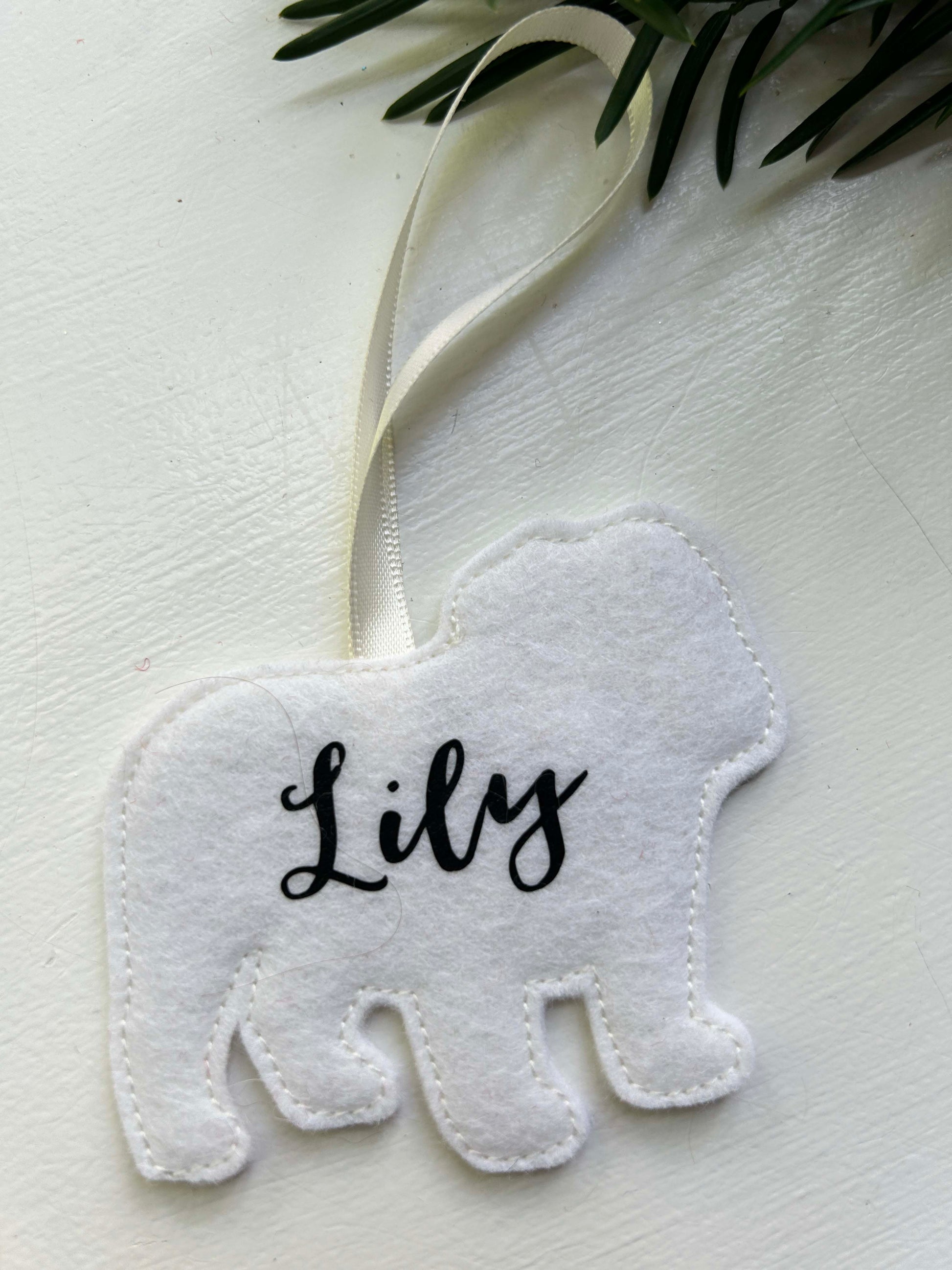 Handmade stitched felt dog breed decoration to add a sentimental touch to your Christmas Tree. Personalized with the name of your pet on the reverse.